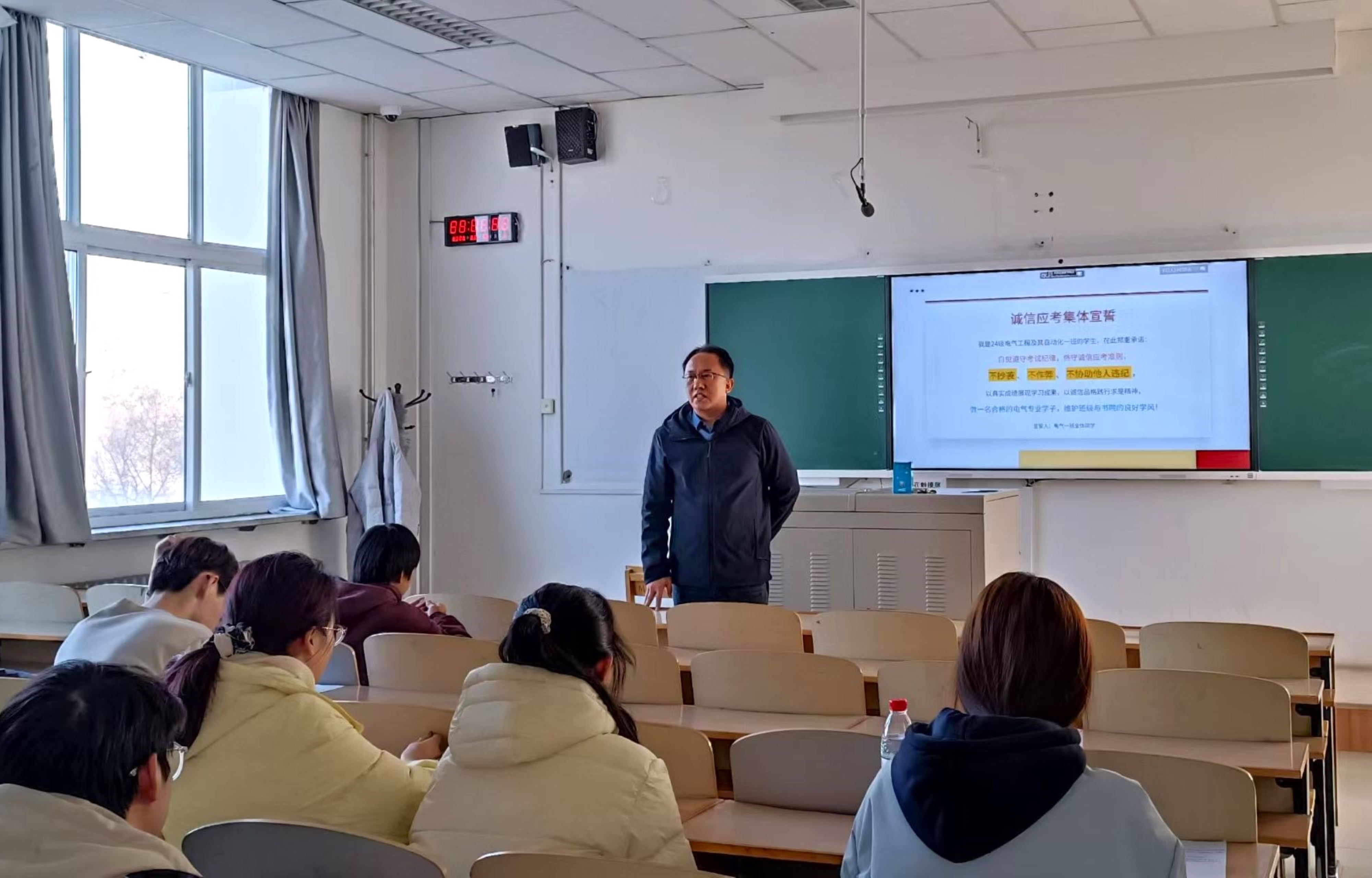 临近期末,学院领导特别强调了诚信应考的严肃性与必要性,勉励同学们以真实学识和严谨态度完成学习检验,共同营造公平健康、积极向上的学业氛围。同时,提醒同学们牢固树立安全意识,注意实验室操作规范、用电安全、网络信息安全及日常人身财产安全,携手建设平安校园。