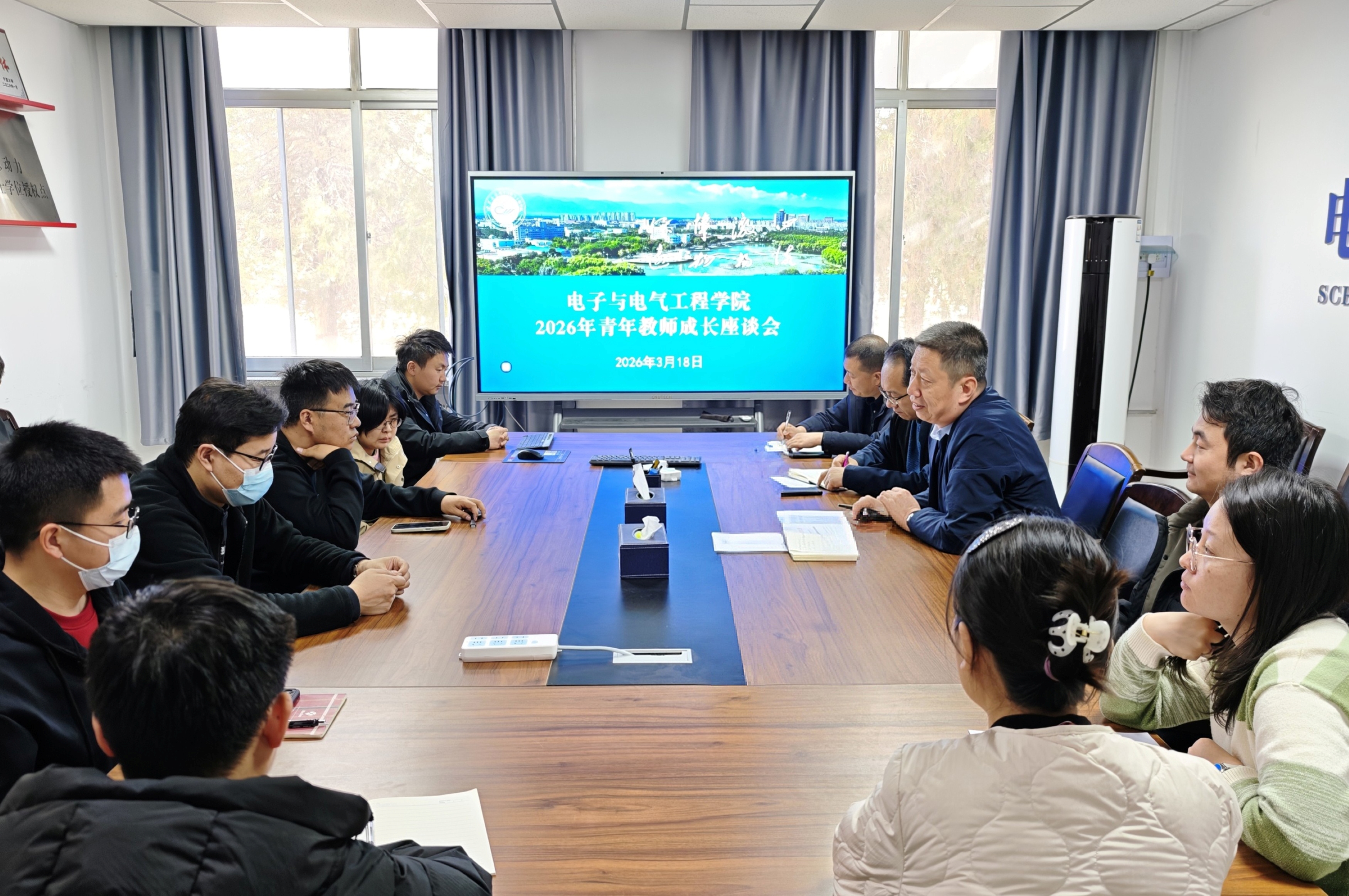 于怀远校区德言楼召开2026年度青年教师成长座谈会。会议由学院党总支书记何彦平主持,学院领导及2022年以来入职的青年教师参加会议。