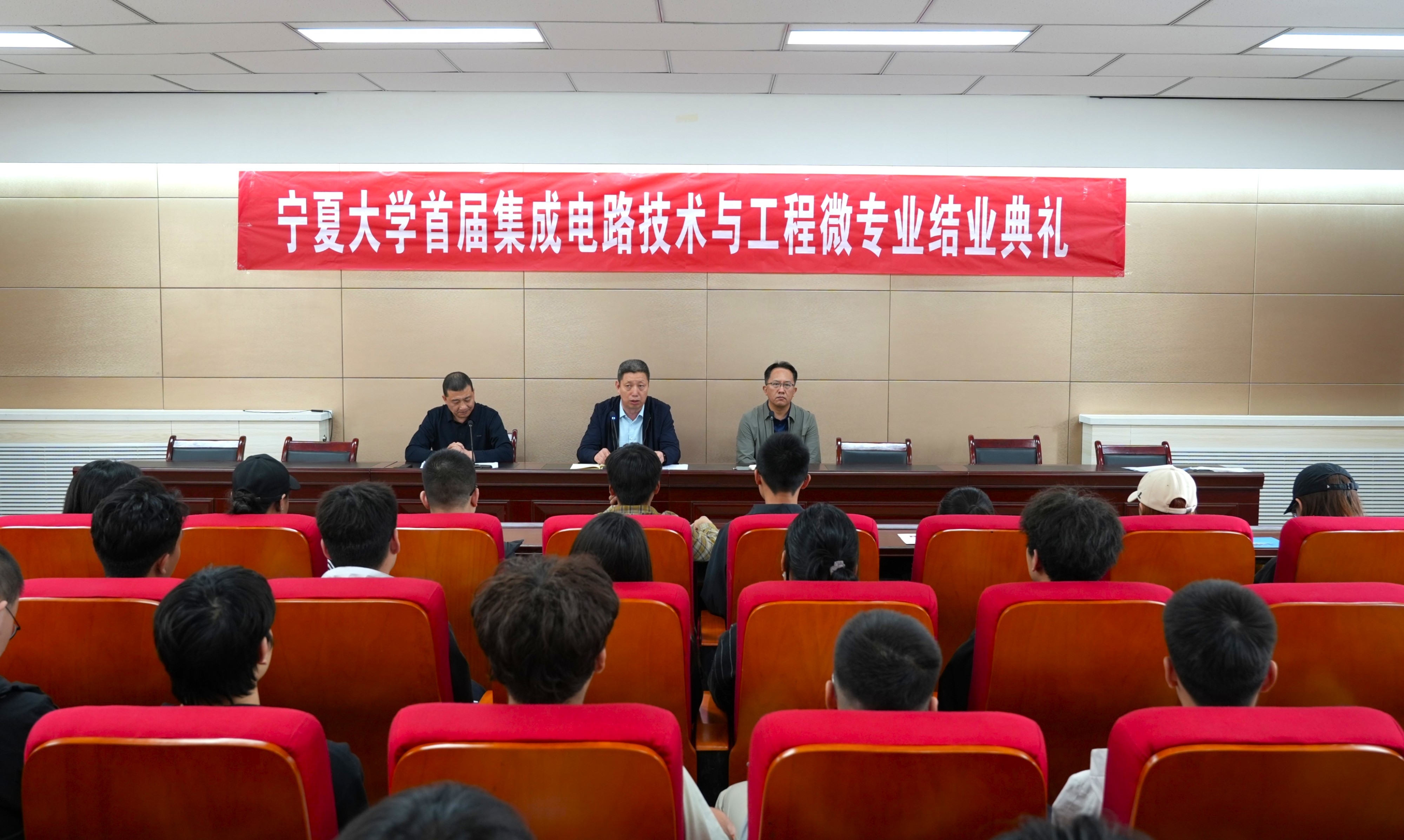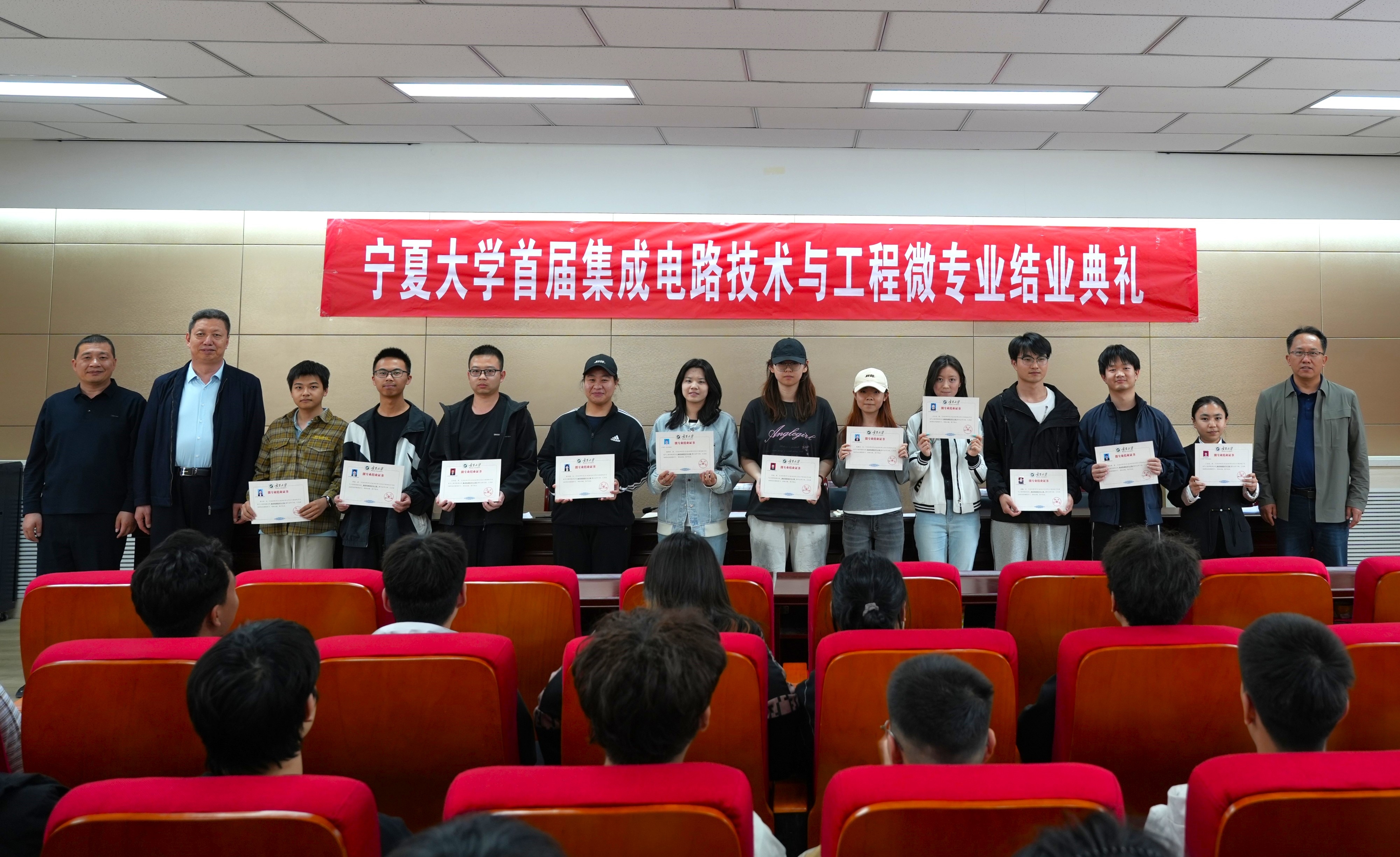 据悉,首届微专业自2024年10月开班以来,53名同学克服跨专业学习困难,先后系统完成了集成电路理论、工艺与设备等核心课程的学习,最终顺利结业。此次结业典礼不仅见证了学院在复合型“新工科”人才培养模式上的成功探索,也为宁夏大学服务国家集成电路战略需求开启了新篇章。