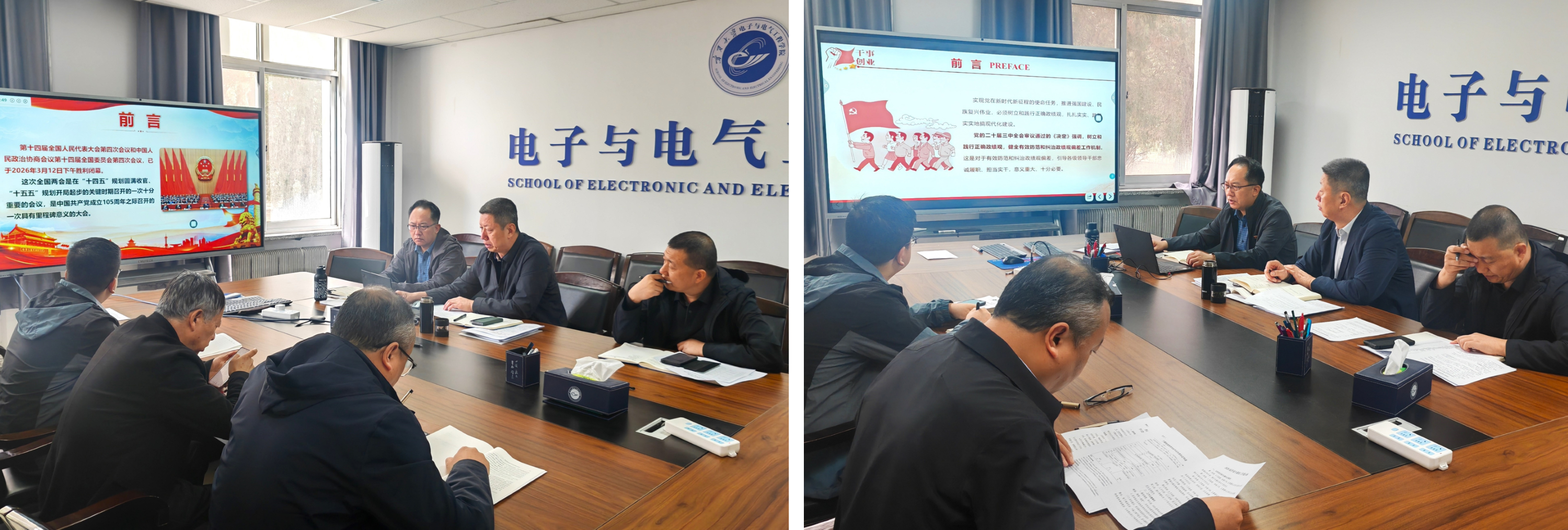 学院领导班子、党总支委员、系主任、教工党支部委员和学位点负责人参加学习会。